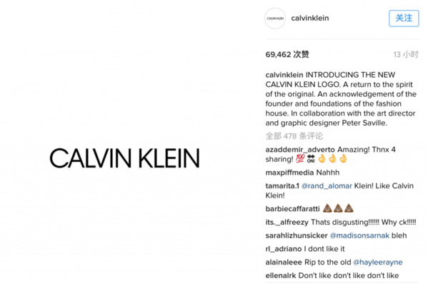 美國著名時裝品牌Calvin Klein 品牌有了新 Logo,由新任創意總監Raf Simons主導並在Calvin Klein的Instagram官方帳號上公佈新設計。 Calvin Klein 品牌官方 Instagram 上寫道,「新 Logo 回歸初心,向品牌創始人和品牌根基致意。」