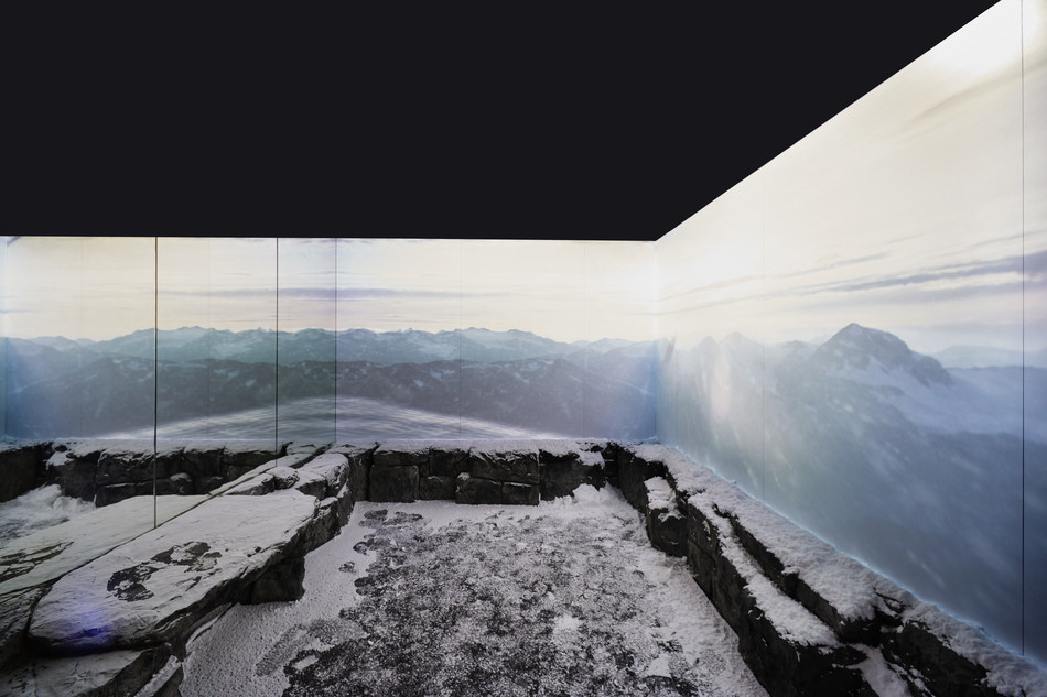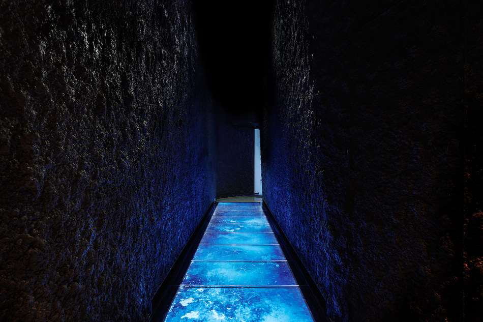 進入“旅程”,顧客首先將遇到“ Crevasse(冰隙) ”通道,地板是由數位玻璃面板鋪設而成。顧客踩上去會觸發感應器,並產生“ 冰裂 ”的效果。