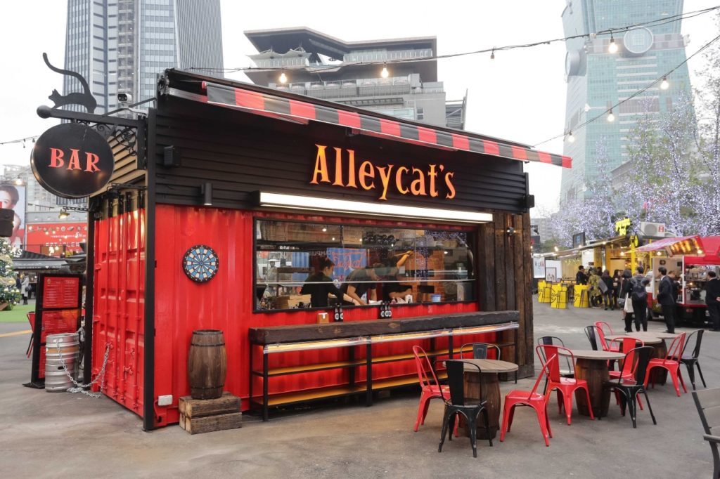 運用舊貨櫃回收的設計的小店佇立精華區,充滿新奇感。