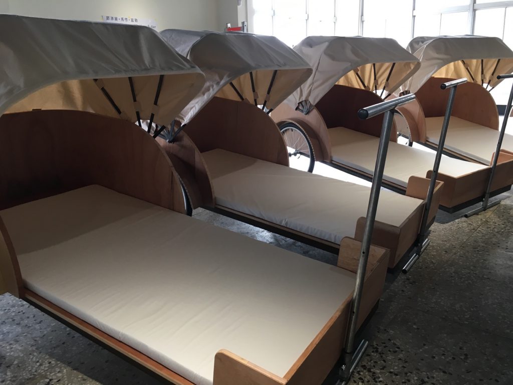 床是造夢、愛慾、生與死的休憩之區,以軍床為素材,陳慧嶠的空間裝置作品反思科技發展與國際軍武爭戰,對居住星球所造成的威脅。由數張軍床組成,陳慧嶠織出一片片、一張張無垠的碧海藍天與彩虹置於軍床板上,象徵在空中飛行的艦隊。