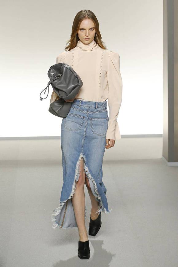 今年看到的牛仔過膝長裙的主要特點是拼接,水洗做舊,以及磨損做舊的裙邊或毛邊幾大元素,這些都出現在Celine、Stella McCartney、Givenchy、Chloé等高級時裝品牌2020春季的秀場上。