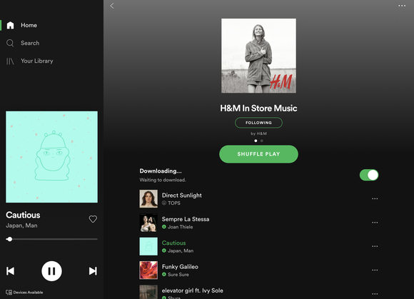 如今,Spotify和Apple Music等全球頭部音樂流媒體平台也加入了企業音樂服務的大軍。 H&M、Nike、Pull & Bear等服飾品牌在Spotify上都開設了官方帳號,還建有品牌獨屬的門店歌單。