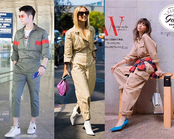 還有一種剛好融合了今年秋冬兩大流行趨勢的款式就是卡其連身褲,一件卡其褲搭配一雙帆布鞋就可以出門的裝扮,既省時又好看。