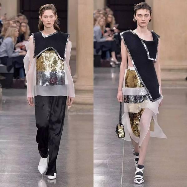 「Process. Process. Process,」秀場背景音中一位女 孩不斷吶喊著。 這一季Christopher Kane想要打造的是一種更為堅韌的女孩魅力,正如他在新聞稿中所說,他想用這個系列表達了對女孩工人和實驗室技工的敬佩。Kane將目光投向了 「抽象的廓形、強硬的角度、犀利的缺口以及制服和實用性」。