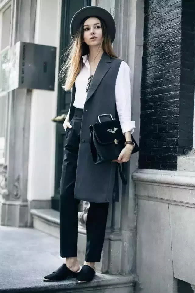 長馬甲與白襯衫的搭配,會讓人顯得簡約幹練又優雅知性,是很適合上班族的 look。