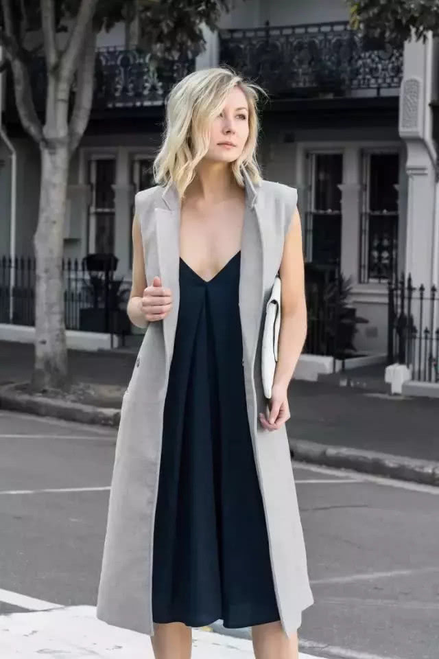 無袖連衣裙想必在夏季是人手好幾件吧?入秋也別著急收起來,套上長馬甲,輕鬆幫你過渡到秋季。
