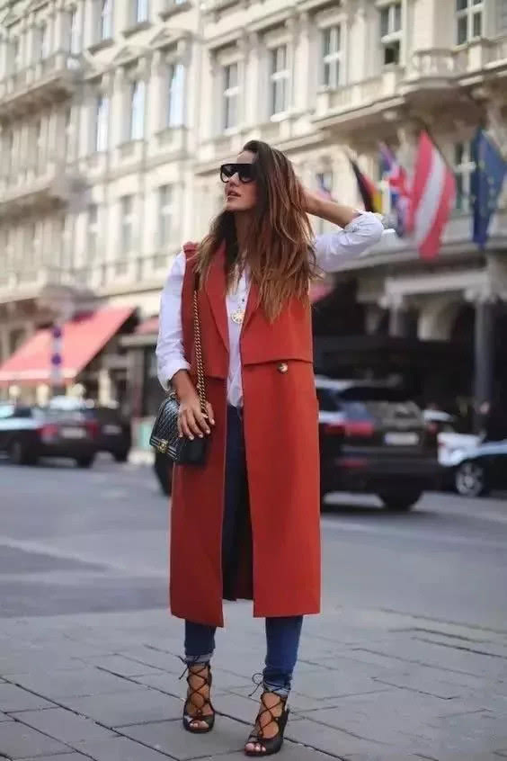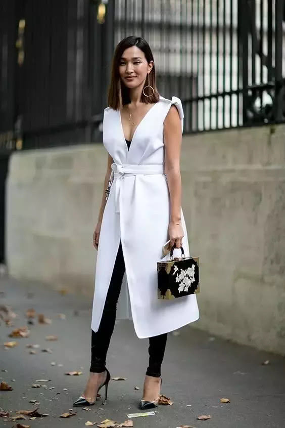 長馬甲與闊腿褲也是妥妥的天作之合,藏肉顯瘦的效果加倍,更能穿出滿分氣場,助你輕鬆變身時尚女王。