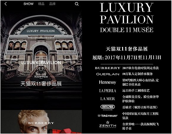 天貓的Luxury Pavilion選擇了舉辦「天貓雙11奢侈品展」,即從11月7日到11月11日,每天入駐品牌各個推出限量版商品。而上線時間不過月餘的京東Toplife則平靜一些,沒有特別的針對性活動舉行。