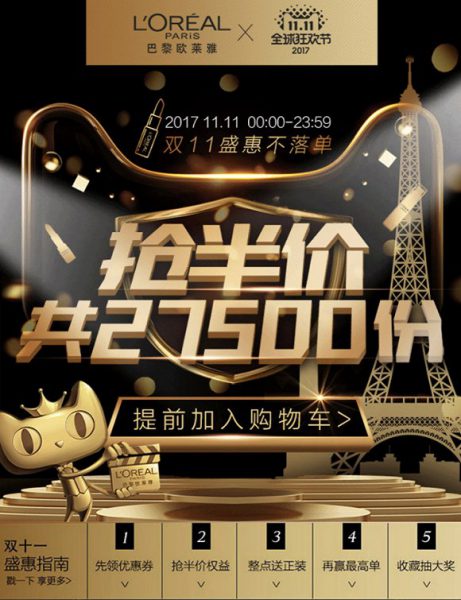 這意味著雙十一對於高端品牌的意義其實更在於提供流量,整個引流過程從兩個月前零星的活動、到10月31日的潮流盛典,一直持續到雙十一當天。雅詩蘭黛集團方面對我們表示,公司一直在摸索在天貓環境上作業的方式,怎樣才能在電商上沉澱下來,而潮流盛典就給他們一個360度展示品牌特點的機會。阿里巴巴法國區總經理Sebastien Badault在接受glossy採訪時曾表示,他們的目的就是為品牌提供一個講故事的平台,也就是用戶注意力獲取。