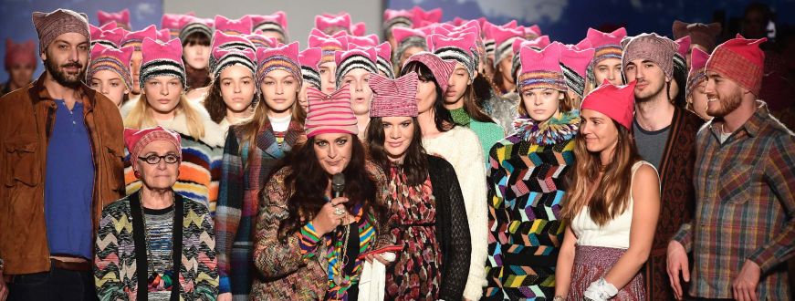 繼紐約時裝周之後,義大利時裝設計師Angela Missoni讓超模們頭戴著Missoni設計貓耳帽登場,帽緣上有著設計師的特色粗條紋,象徵對侵犯女性權利的抗議。