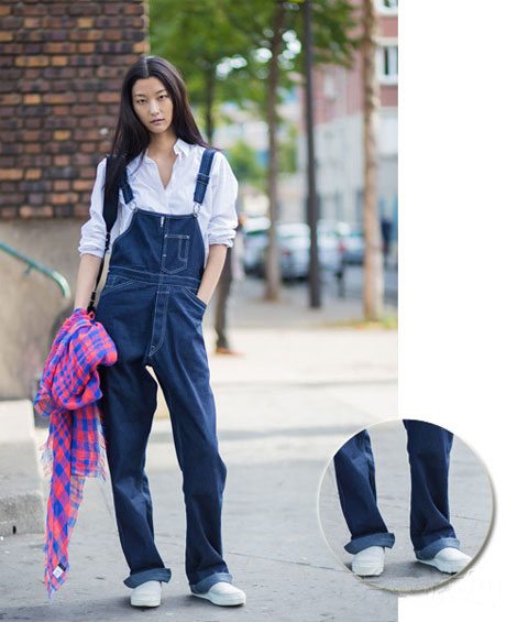 背帶褲本來就夠減齡了,如果穿上短靴或是高跟鞋又變會成熟或硬朗,搭配球鞋形成一體,讓你嫩到底!