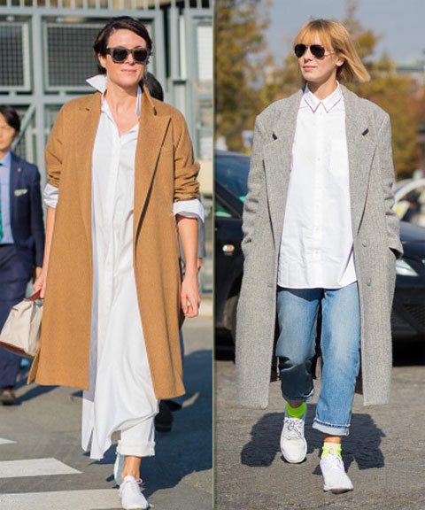 大衣一直給人幹練,隆重的感覺,這時搭配一雙白球鞋可減輕厚重感,讓你隨性十足,帶來的強勢感瞬間就降下來了!