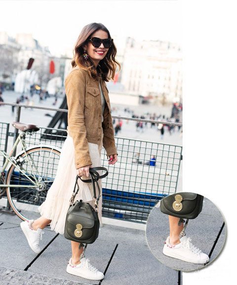 別以為裙子就只能搭配淑女的芭蕾舞鞋或是高跟鞋,穿上運動鞋一樣吸引情人的眼光,還增加了小清新的學生氣質呢!