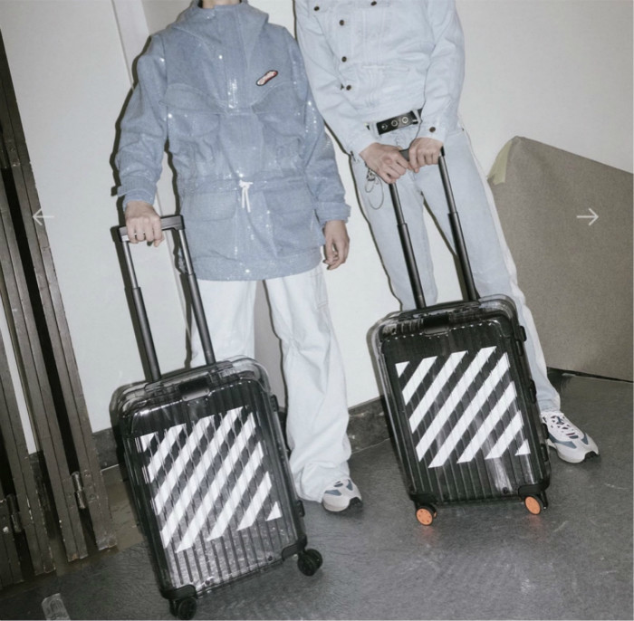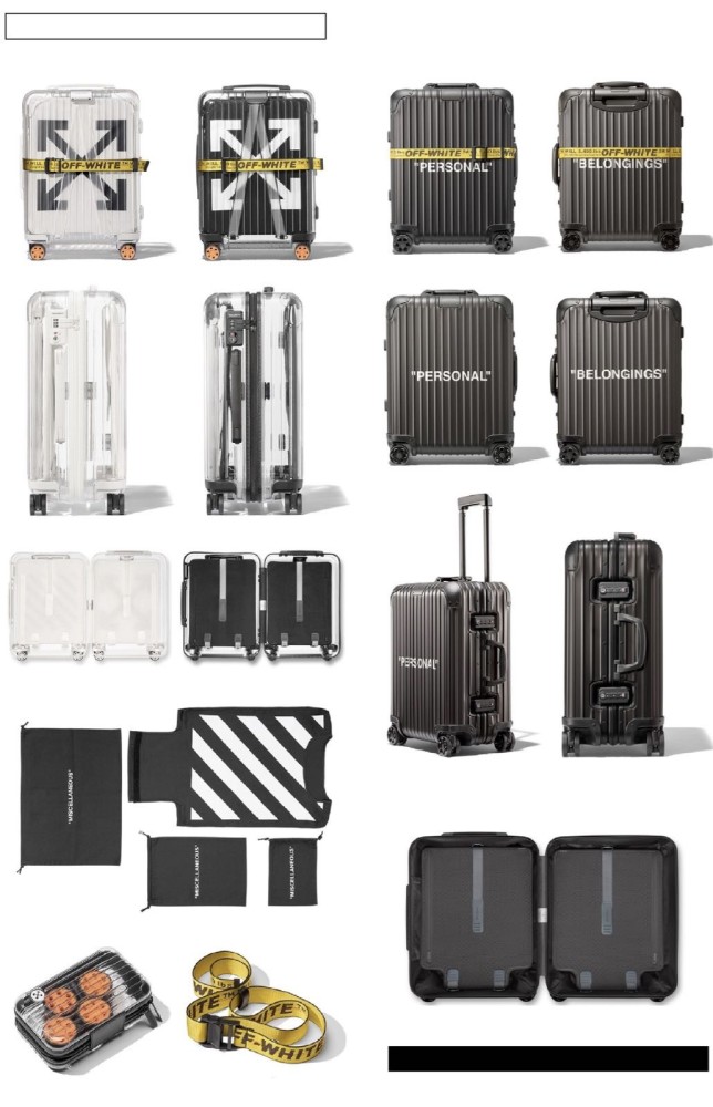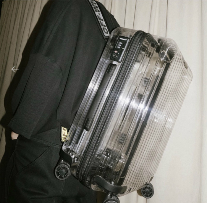 10 月 6 日 RIMOWA 宣佈與 OFF-WHITE推出合作第二季,這次將推出兩款不同設計的行李箱,分別採用透明和文字印花的不透明設計,透明款叫作“See Through”,而不透明的款式則取名為“Personal Belongings”,保留了OFF-WHITE引號的一貫直白。