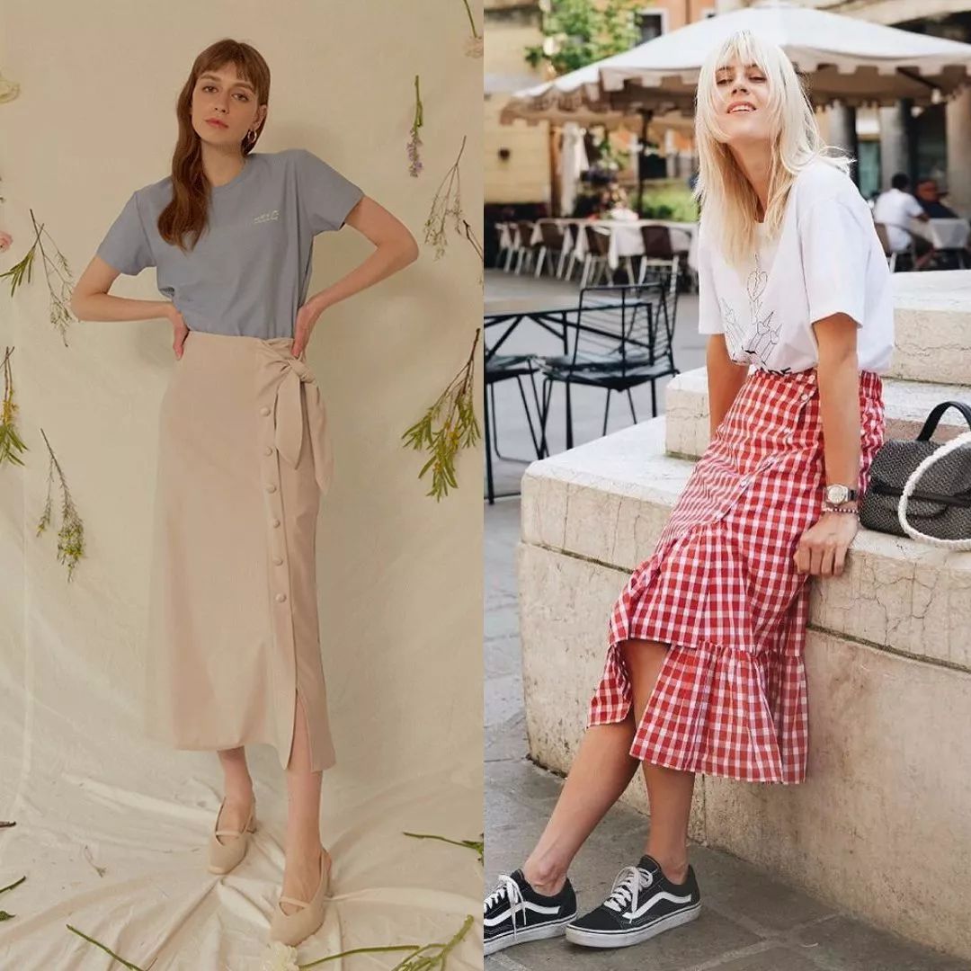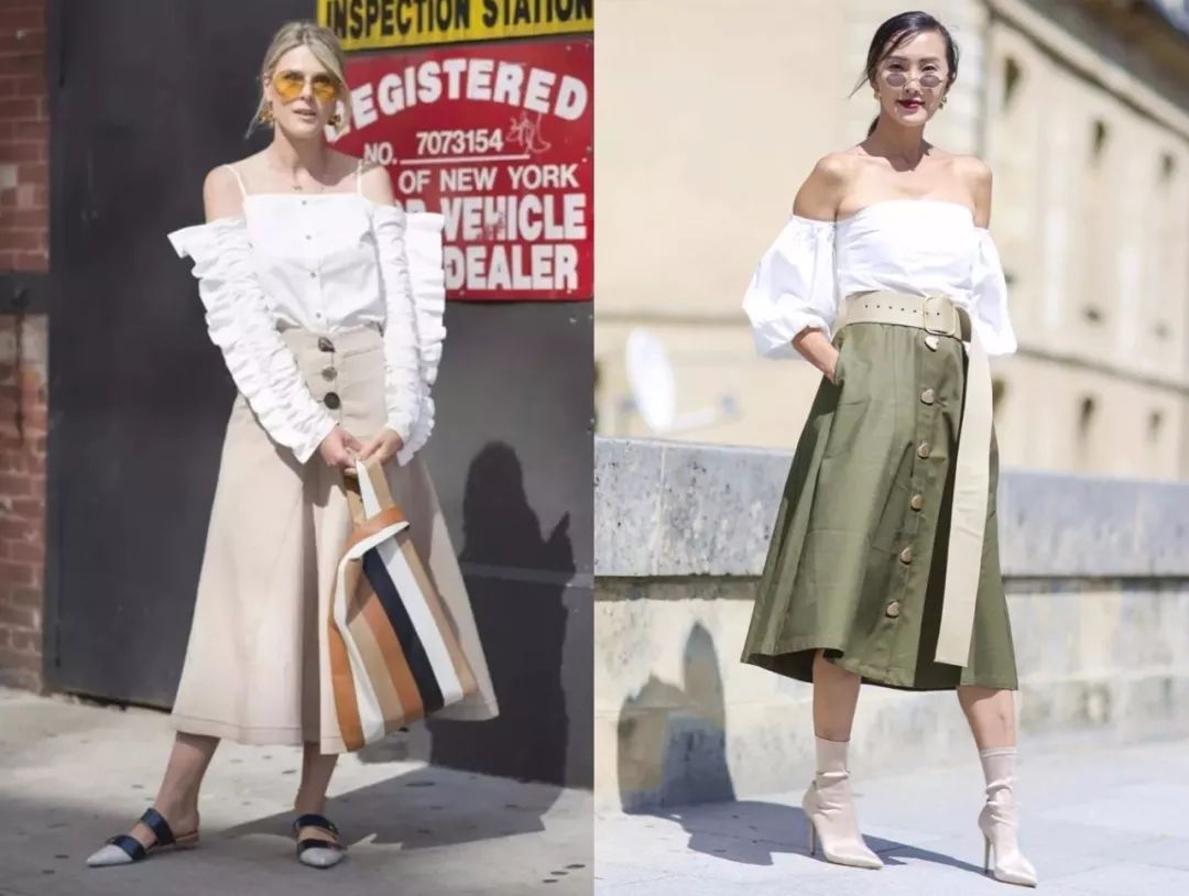 中長款的傘裙相比A字裙,更多的是輕熟的美感,時髦美膩又不失優雅端莊。