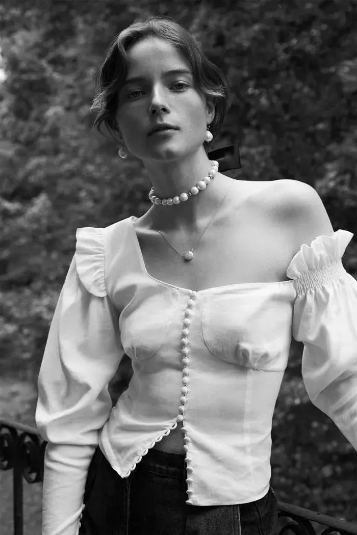 排扣襯衫,浪漫優雅和高級復古之間任意切換。