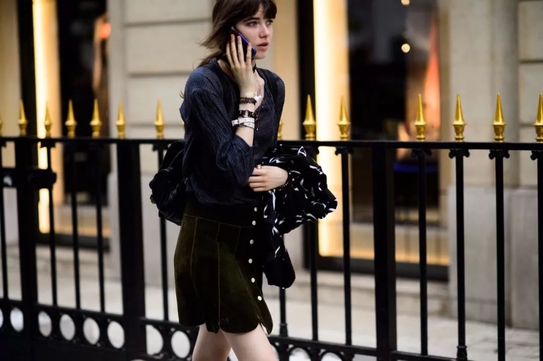 短款的A字裙,有著青春活潑的少女風格,尤其是添加排扣後,顯得時髦不單調!
