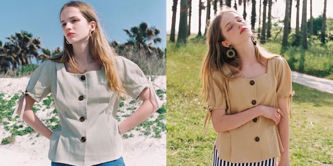 排扣設計的方領襯衫,多了法式慵懶風情,夏天這樣穿,美得剛剛好!