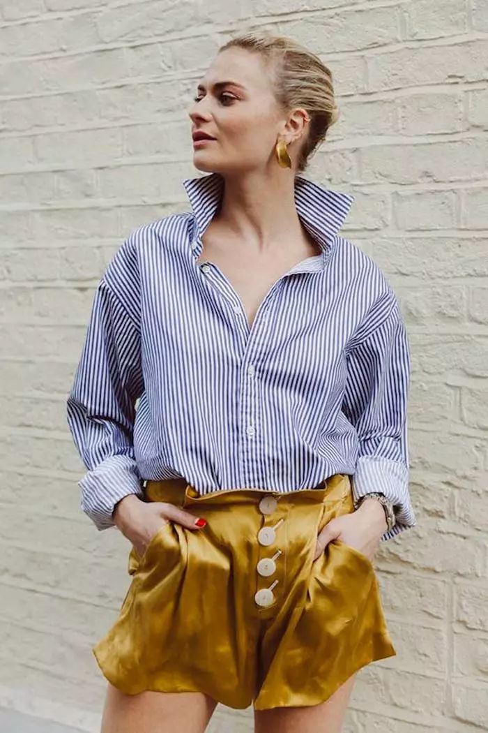 夏天的短褲,搭配排扣作以點綴作用,顯得更加精緻時髦,演繹出來的風格也不會顯得過於侷限。