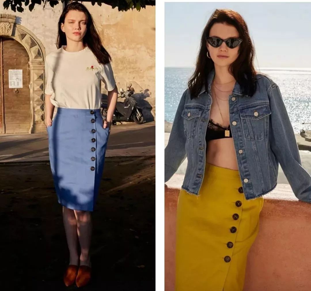半裙原本那飄逸,與排扣的搭配,更顯精緻時髦!