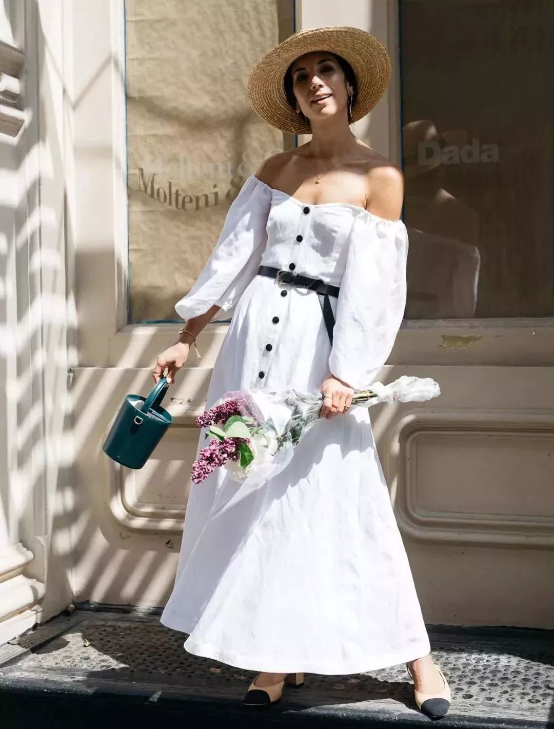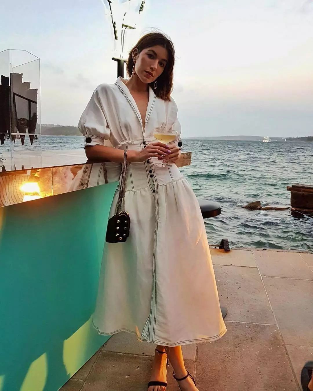 帶有排扣設計的小白裙一改往日的樸素,保留簡約大氣的風格,多了一分時髦和優雅。