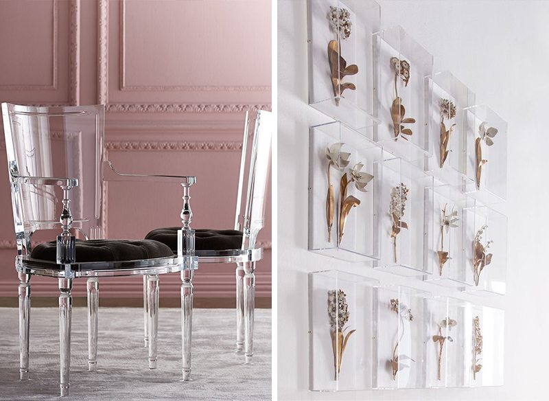 同樣是受到極簡主義餘威的影響,壓克力(丙烯酸塑膠,又名有機玻璃)這種風格現代的材質在 2017 年依舊是家裝明星材質,尤其是無色透明的款式。無論是運用亞克力的傢俱還是裝飾品,都值得嘗試。它其實屬於一款非常百搭的材質,無論是融入到復古典雅的裝修風格中來形成一種時間風格上的衝突,還是用於打造摩登簡約的家裝都很合適。