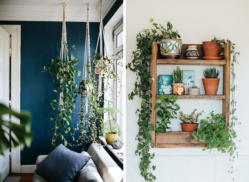 Pinterest 說了 2017 年一起在室內種植藤蔓植物吧,看起來多肉的地位要被茂盛的藤蔓替代了呢。對於我們來說,霧霾橫行的當下真是很有必要在屋內找些能淨化空氣的幫手。常春藤、綠蘿一類的藤蔓植物都是淨化的好手,可以吸收空氣中的甲醛、苯、尼古丁等有害化學物質。當然單純從裝飾的角度講,藤蔓的可塑性還是非常強,無論是擺放在桌上,或是吊掛,再或者組合柵欄、格子架裝飾都非常好看。