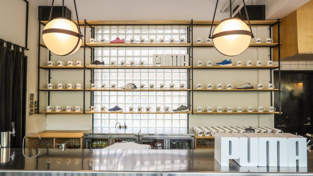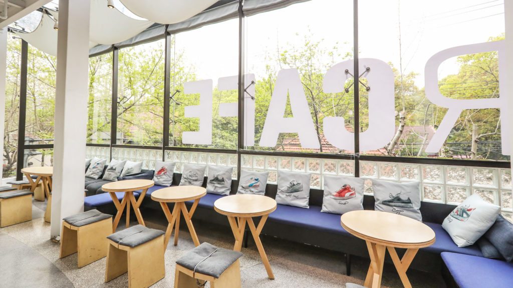 上週末,PUMA 就和位於上海原法租界內著名的網紅餐廳 BLACKBIRD 聯手,開設了一家名為 SNEAKER CAFE 的特殊期間限定店鋪。SNEAKER CAFE 在保留 BLACKBIRD 餐廳原有佈置的基礎上,在外牆、店內裝飾等多處加入了 PUMA 品牌元素呈現而成。由於餐廳採用巨大的玻璃天窗設計,又正對西面,即使是陰霾的雨天也能帶來極佳的採光。