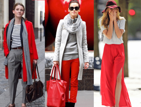 溫暖的大紅碰上溫柔的灰色,大紅的奪目感被溫柔的灰色融化,能讓你的大紅不是那麼赤裸裸的高調。