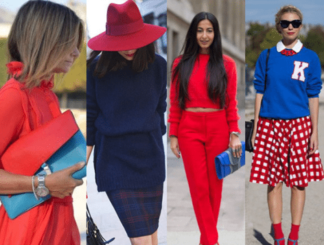 相比與綠色,紅色搭配藍色更顯莊嚴,紅+藍可是不少國家的國旗配色。冷靜藍色搭配熱烈紅色,使人顯得俏穩重又積極,碰撞感的搭配一樣也要注意使用比例哦~