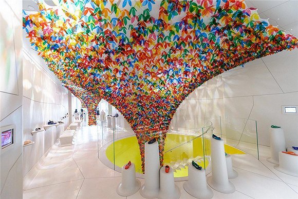 事實也證明如此。以巴西鞋履製造商Melissa為例,該品牌成立於1979年,憑藉推出的兒童果凍涼鞋而聞名。像很多經歷轉型的品牌一樣,Melissa在1990年代陷入了發展困境。但隨後,該品牌調整了策略佈局,開始與建築師進行合作,並於2006年在巴西聖保羅開設了首家結合藝術設施進行商品陳列的旗艦店,隨後於2012年在紐約以藝術洞穴為主題推出了一家更接近 “畫廊”的店舖Galleria Melissa,並在2014年把這類商店推廣至倫敦。