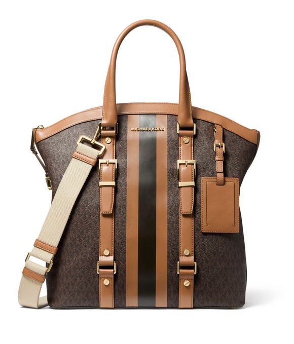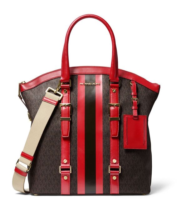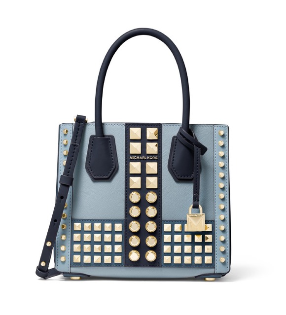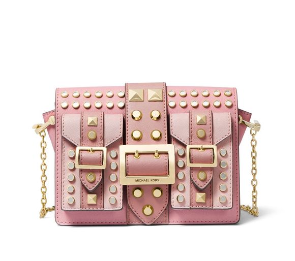 最近Michael Kors便通過一系列視覺效果豐富的配飾展現了這一理念。在全新的Signature包袋系列中,飽滿能裝的造型與品牌經典的logo暗紋印花搭配在一起,紅、棕兩款條紋包袋則帶來了類似於機械轉動的奇妙視覺效果。而以鉚釘裝飾為設計語言的Hadyen和Mercer包袋中,淺淡的粉色與藍色分別書寫了屬於夏日的清涼感受,將甜美的風格與搖滾的熱情結合了起來。