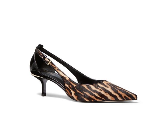 而在鞋履系列裡面,Michael Kors繼續沿用了近期大熱的動物紋元素,把大量的豹紋圖案注入到高跟鞋和運動鞋的設計中。其中值得關注的是一款豹紋貓跟尖頭鞋,用復古的手法演繹出大膽性感的形象。