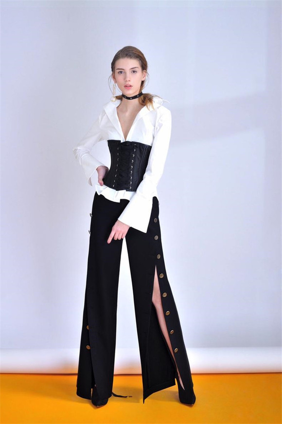 但如果你不太能確定你究竟適合什麼高度的開衩,設計師們也為你很貼心的準備了拉鏈和紐扣兩種開衩款,這種可以隨意調節褲型的款式也真的是很貼心了。