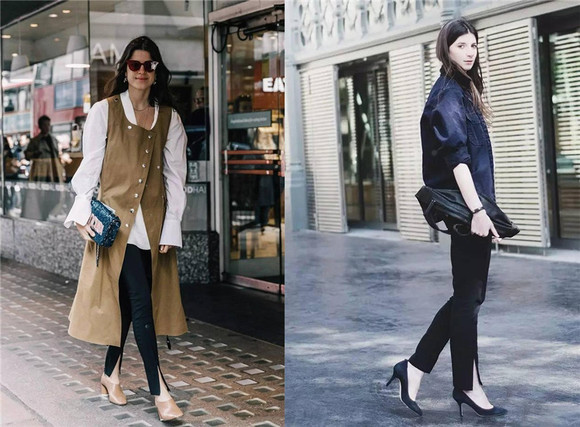 比如說,前開衩到膝蓋的褲子,一般可以修飾小腿的視覺效果,顯得小腿更加纖細並拉長小腿線條。