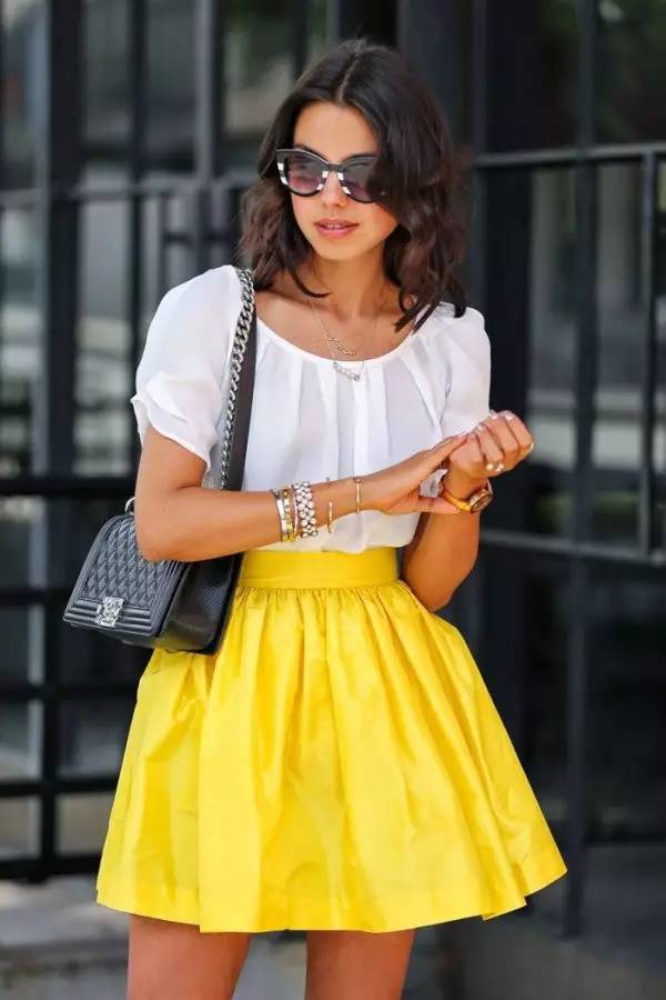 雖然黃白搭配屬於很少女的配色,不過熟女們可以選黃色大擺傘裙,展現出大女人的氣場。