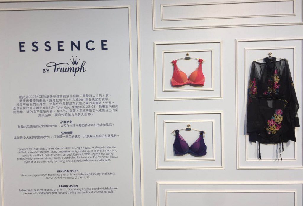 「黛安芬」為德國內衣領導品牌,1886年起以6名員工與6台縫紉機於一個穀倉內建立了內衣工廠,展開女性貼身衣著美麗而充滿驚喜的一頁。自1933年於瑞士成立第一家海外公司之後,在1960年代開始拓展亞洲市場。從1968年台灣分公司的成立到2018年發表全新品牌概念,將台灣「黛安芬」50年來的精華毫無保留且驕傲地展現出來,並展示了三大子品牌ESSENCE、FLORALE及Triaction,各品牌以強烈鮮明的特色,呈現出「黛安芬」對每個年齡層及各族群女性貼心細緻的照顧。