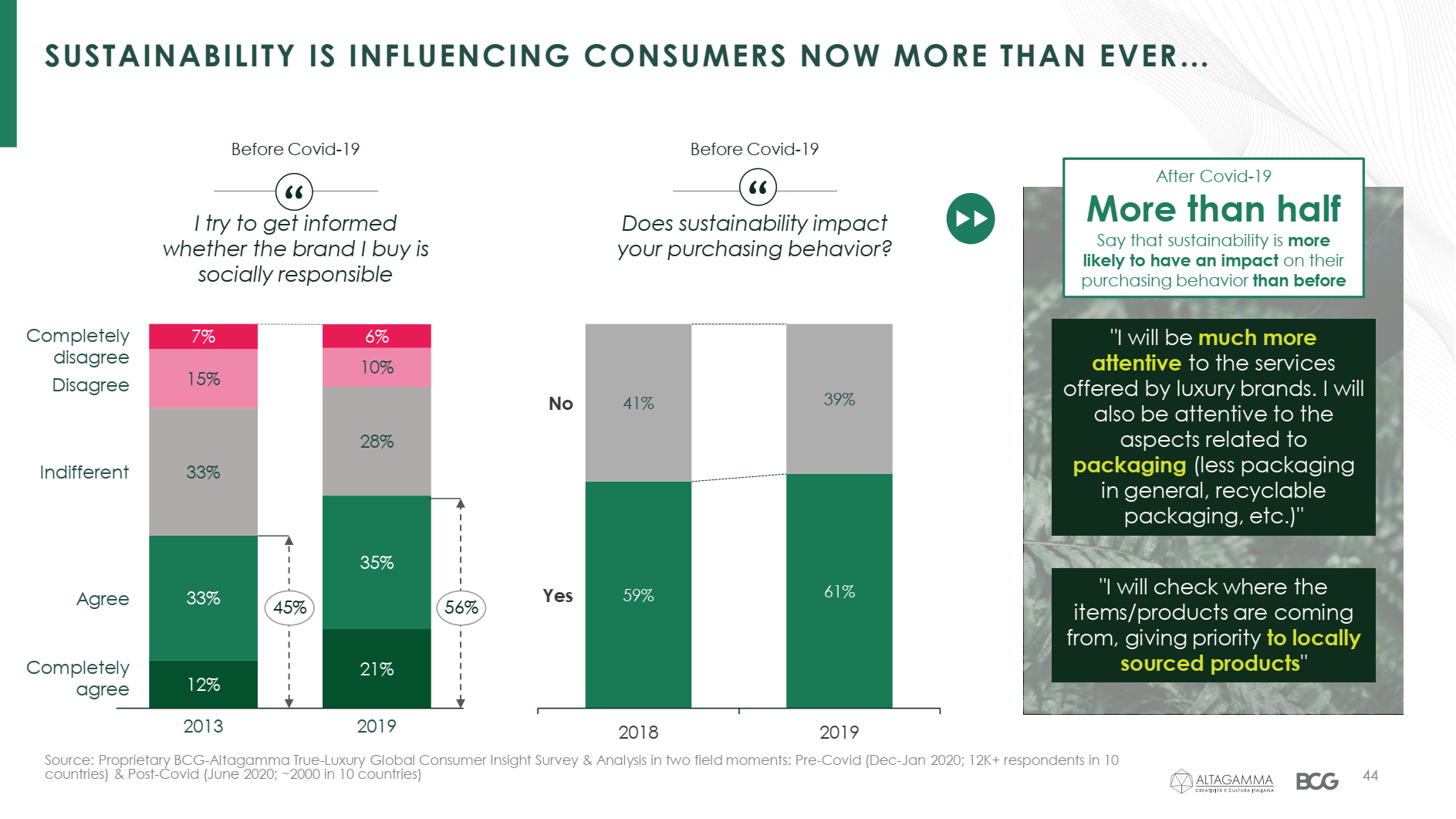 報告指出,超過50%的受訪者表示“產品是否可持續”比以往更影響自己的購物決定。
