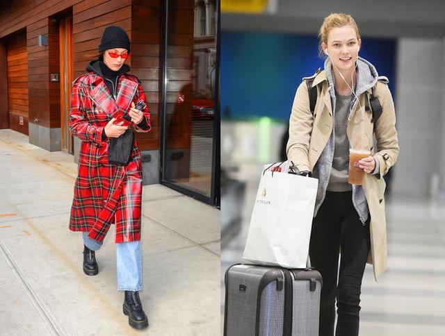 超模小KK和bella也是風衣的死忠粉,她們用風衣疊穿衛衣的方式讓風衣的英倫風中多了運動休閒感,混搭技術滿分。