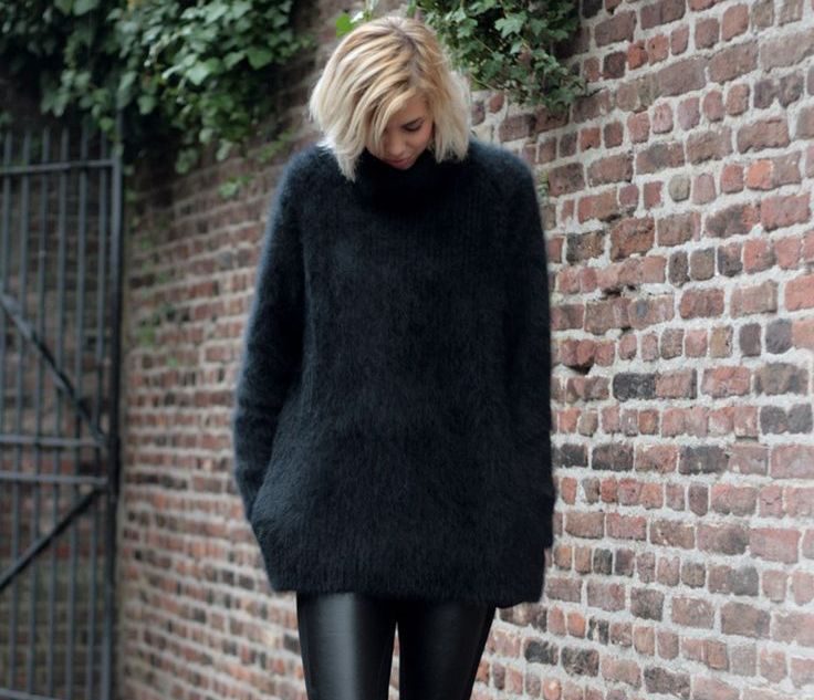 上述毛衣的搭配也同樣適用於黑色的高領毛衣,高領毛衣會從視覺上更加拉伸人體的線條,是人開起來又高又瘦。